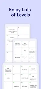 Each word game level consists of cells. One or more cells contain clues about the words hidden in other cells. Use logic to place the answers to the word riddles in the correct cells. Solve the word puzzle and complete all the word puzzle levels.