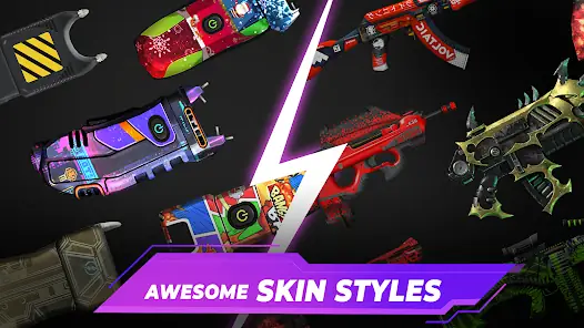 ⚡ Wide variety of shock guns, machine guns, and skins.